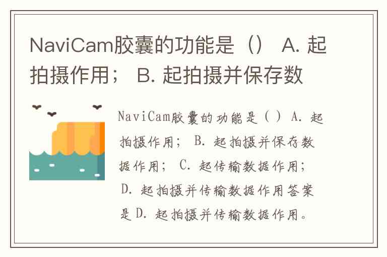 NaviCam胶囊的功能是() A. 起拍摄作用; B. 起拍摄并保存数据作用; C. 起传输数据作用; D. 起拍摄并传输数据作用