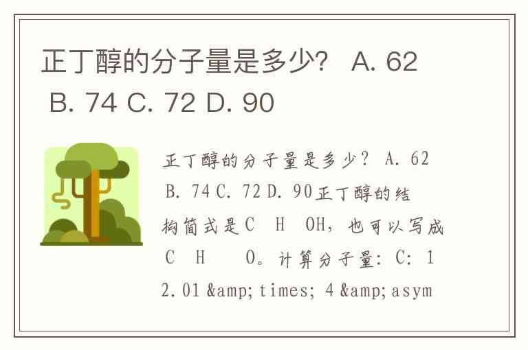 正丁醇的分子量是多少? A. 62 B. 74 C. 72 D. 90
