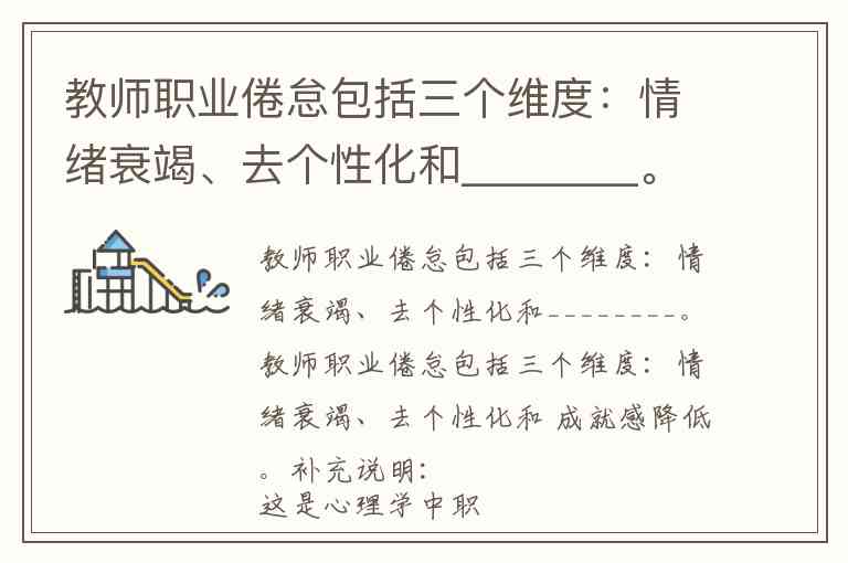 教师职业倦怠包括三个维度:情绪衰竭、去个性化和 成就感降低。