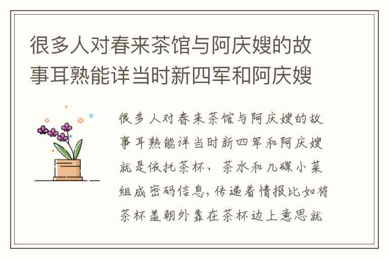 春来茶馆里,茶客们用茶杯盖的位置、豆子的数量、瓜子和红菱等作为特定含义的符号,外人看来只是普通喝茶吃东西的场景,但内部人员通过这些约定好的符号就能传递情报。