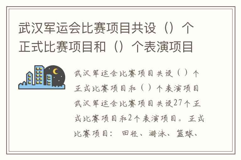 武汉军运会比赛项目共设()个正式比赛项目和()个表演项目