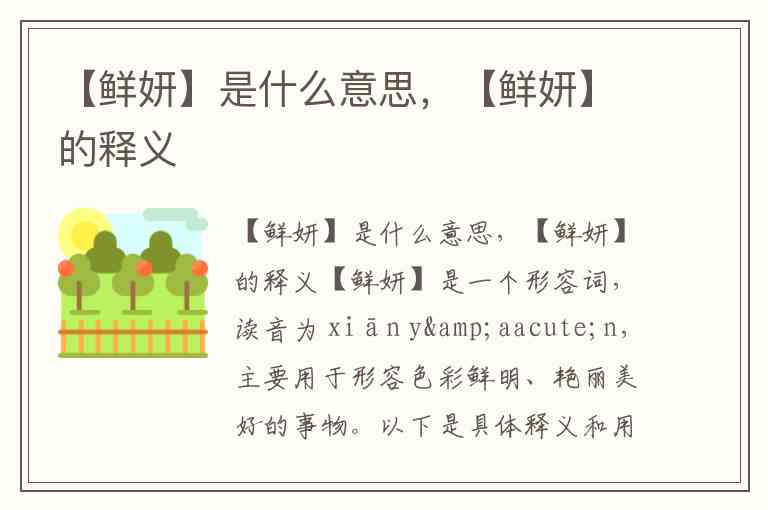 【鲜妍】是一个形容词,读音为 xiān yán,主要用于形容色彩鲜明、艳丽美好的事物。以下是具体释义和用法解析: