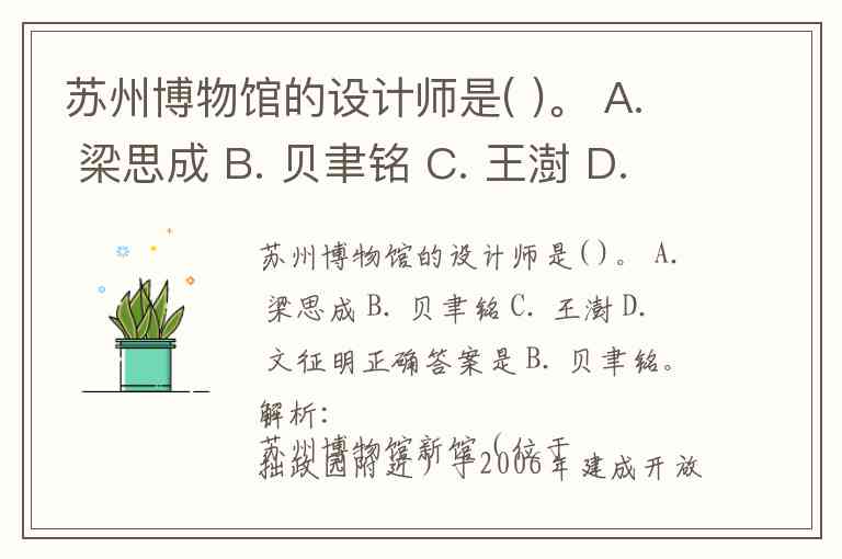 苏州博物馆的设计师是( )。 A. 梁思成 B. 贝聿铭 C. 王澍 D. 文征明