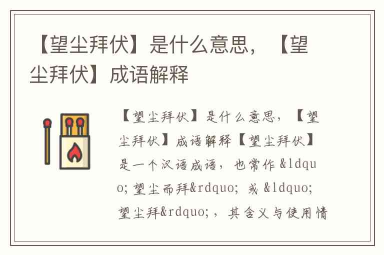 【望尘拜伏】是一个汉语成语,也常作 “望尘而拜” 或 “望尘拜”,其含义与使用情境如下: