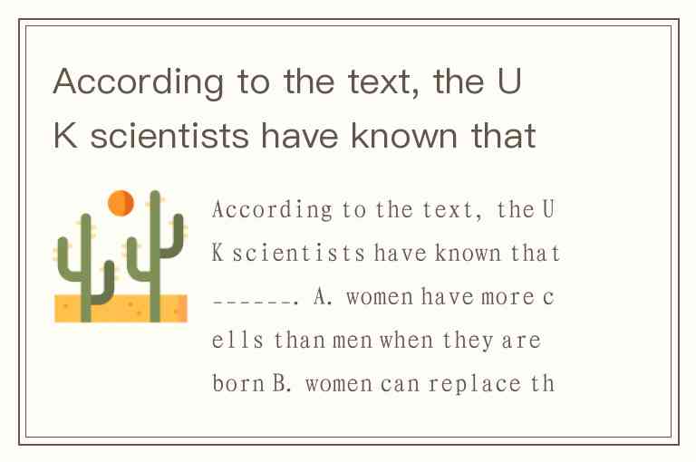 According to the text, the UK scientists have known that______. A. women have more cells than men when they are born B. women can replace the cells that enable the heart to beat C. the female heart loses few of the cells with age D. women never lose their pumping power with age