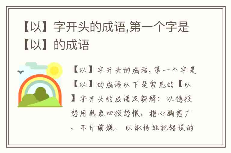 以下是常见的【以】字开头的成语及解释: