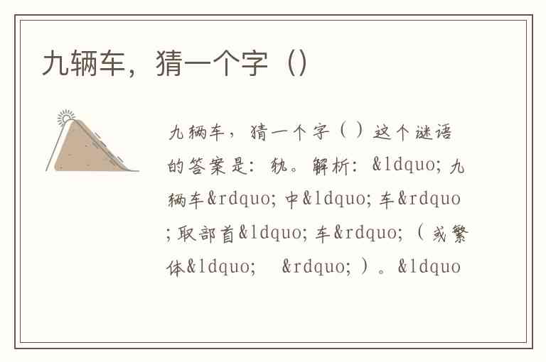 九辆车,猜一个字()
