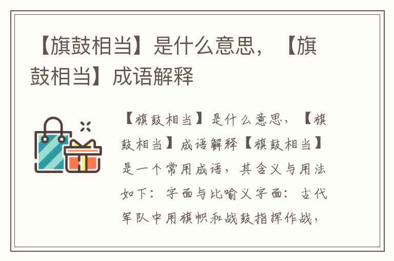 【旗鼓相当】是一个常用成语,其含义与用法如下:
