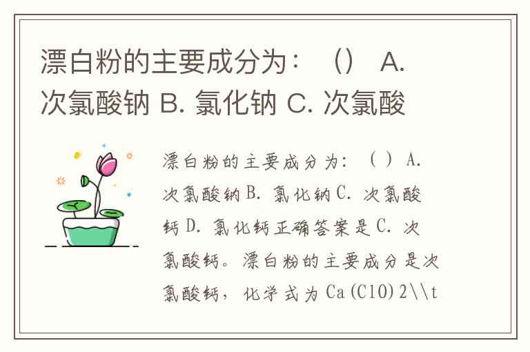 漂白粉的主要成分为:() A. 次氯酸钠 B. 氯化钠 C. 次氯酸钙 D. 氯化钙