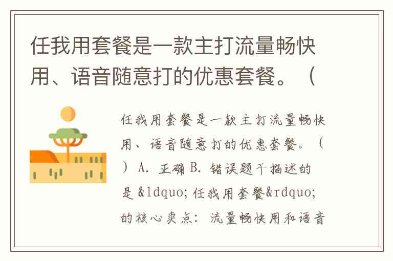 题干描述的是 “任我用套餐” 的核心卖点:流量畅快用和语音随意打,这与实际运营商的推广内容相符。所以判断为 正确。