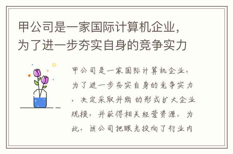 甲公司是国际计算机企业,要通过并购扩大规模、获得经营资源。