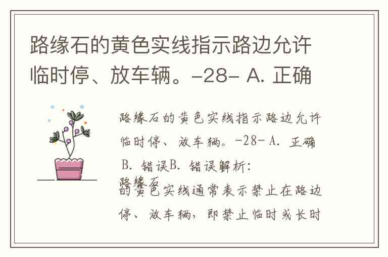 路缘石的黄色实线指示路边允许临时停、放车辆。-28- A. 正确 B. 错误