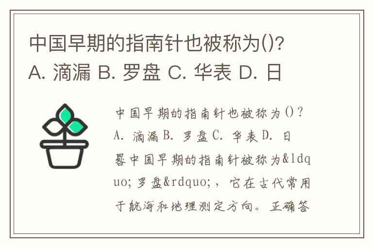 中国早期的指南针也被称为()? A. 滴漏 B. 罗盘 C. 华表 D. 日晷
