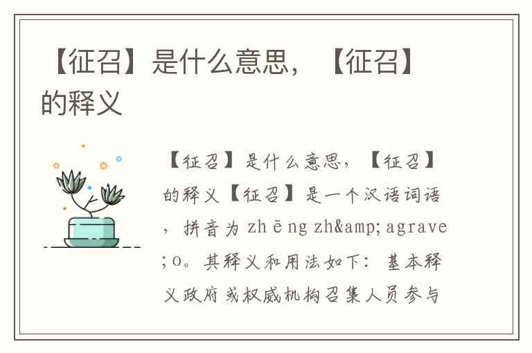 【征召】是一个汉语词语,拼音为 zhēng zhào。其释义和用法如下:
