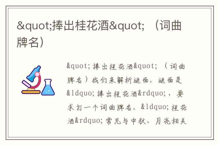 谜面是“捧出桂花酒”,要求打一个词曲牌名。