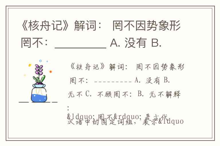 《核舟记》解词: 罔不因势象形 罔不:_________ A. 没有 B. 无不 C. 不顾