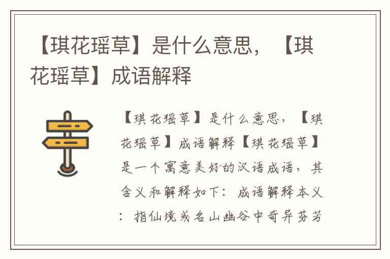 【琪花瑶草】是一个寓意美好的汉语成语,其含义和解释如下: