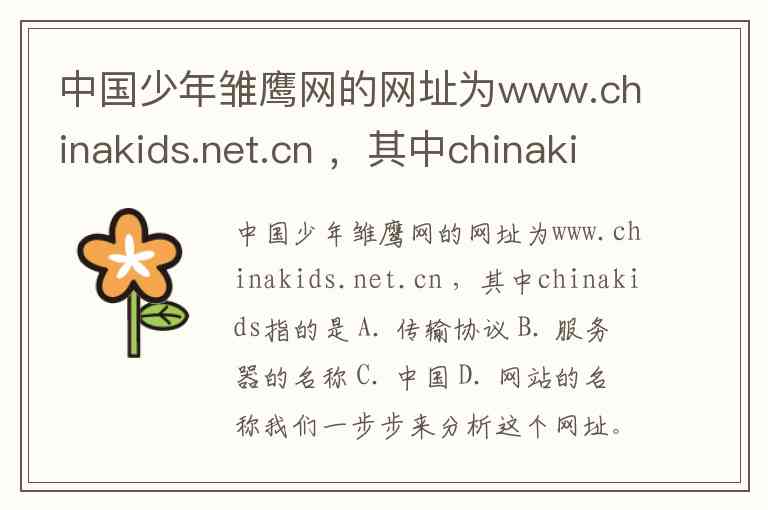 中国少年雏鹰网的网址为www.chinakids.net.cn ,其中chinakids指的是 A. 传输协议 B. 服务器的名称 C. 中国 D. 网站的名称