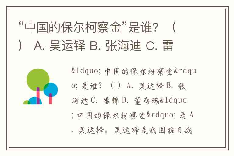 “中国的保尔柯察金”是谁?() A. 吴运铎 B. 张海迪 C. 雷锋 D. 董存瑞