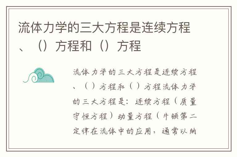 所以完整答案是:流体力学的三大方程是连续方程、(动量)方程和(能量)方程。