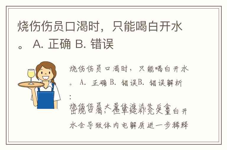 烧伤伤员口渴时,只能喝白开水。 A. 正确 B. 错误