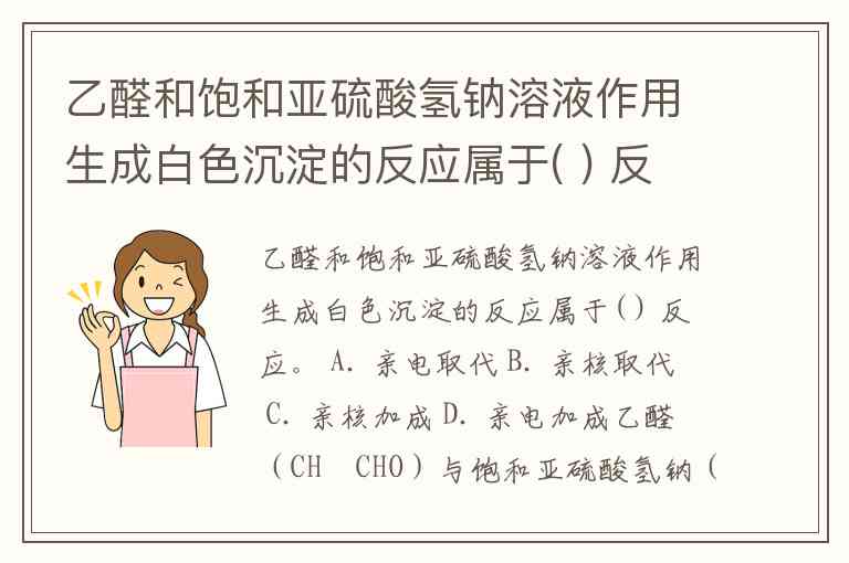 乙醛和饱和亚硫酸氢钠溶液作用生成白色沉淀的反应属于( ) 反应。 A. 亲电取代 B. 亲核取代 C. 亲核加成 D. 亲电加成