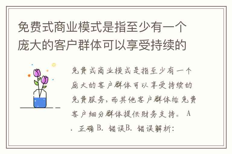 因此,题干对“免费式商业模式”的定义不够准确,答案为 错误。