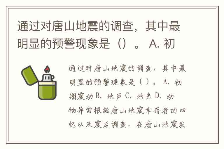 通过对唐山地震的调查,其中最明显的预警现象是()。 A. 初期震动 B. 地声 C. 地光 D. 动物异常
