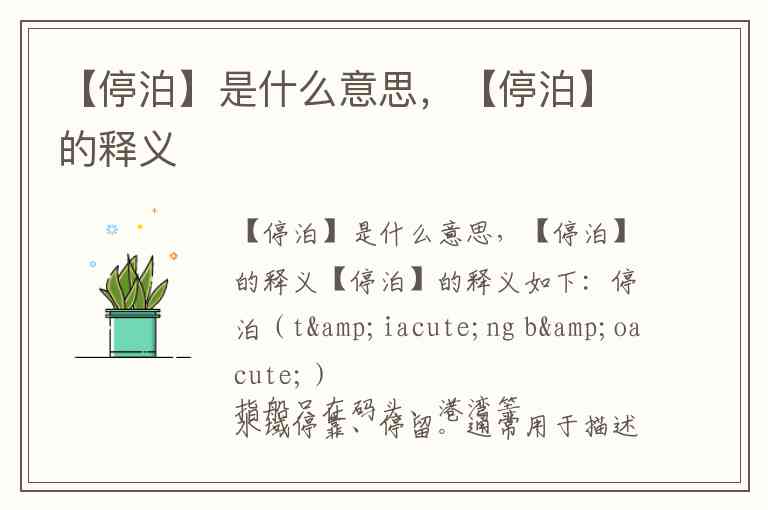 希望以上解释能帮助您准确理解“停泊”的含义!
