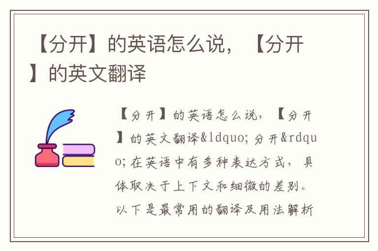 “分开”在英语中有多种表达方式,具体取决于上下文和细微的差别。以下是最常用的翻译及用法解析: