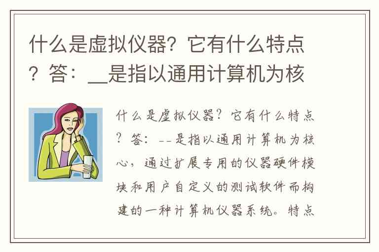 什么是虚拟仪器?它有什么特点?答:__是指以通用计算机为核心,通过扩展专用的仪器硬件模块和用户自定义的测试软件而构建的一种计算机仪器系统。特点:虚拟仪器的各种测试盒人机交互功能均可由用户自行开发定制,打破了仪器功能只能由厂家定义,用户无法改变的模式;仪器硬件的模块化设计,使得仪器系统易于集成和扩展,大大缩短了研发周期;具有灵活的测试过程控制和强大的数据处理能力,易于实现测试的智能化和自动化;与传统仪器相比,虚拟仪器技术与计算机技术的发展进步,具有显著的性能、体积和价格优势。