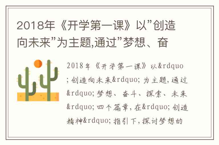 题目中,《开学第一课》以“创造向未来”为主题,通过四个篇章探讨梦想、奋斗、探索和未来,旨在引领中小学生感悟创造精神、鼓励他们锻炼实践能力、提升科学素养等,体现了文化对人的积极影响。