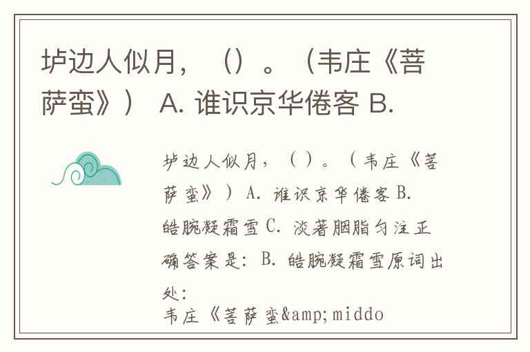 因此,与“垆边人似月”衔接的下句应为“皓腕凝霜雪”。