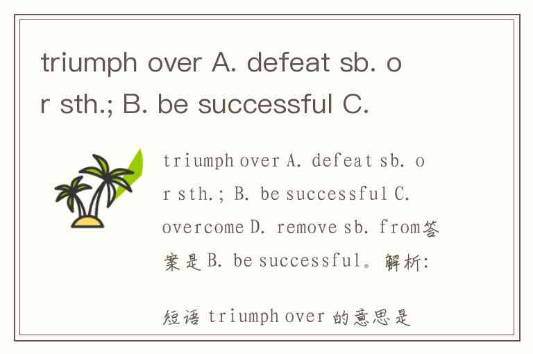 triumph over A. defeat sb. or sth.; B. be successful C. overcome D. remove sb. from