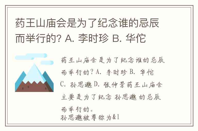 药王山庙会是为了纪念谁的忌辰而举行的? A. 李时珍 B. 华佗 C. 孙思邈 D. 张仲景
