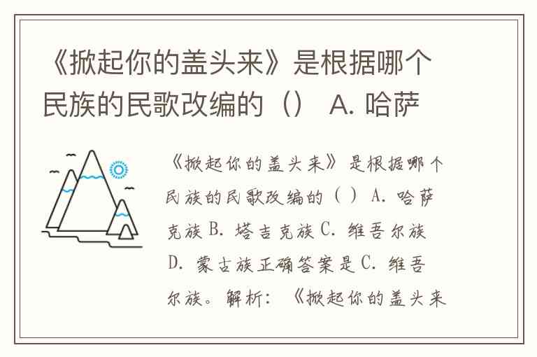 《掀起你的盖头来》是根据哪个民族的民歌改编的() A. 哈萨克族 B. 塔吉克族 C. 维吾尔族 D. 蒙古族