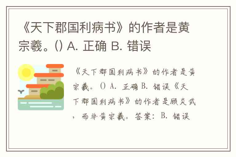 《天下郡国利病书》的作者是黄宗羲。() A. 正确 B. 错误