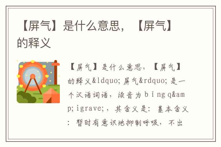 “屏气”是一个汉语词语,读音为 bǐng qì,其含义是: