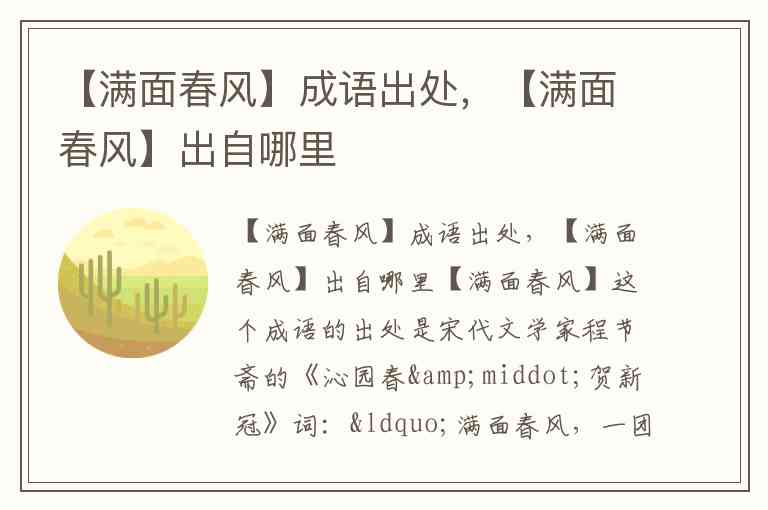 在这首词中,“满面春风”用来形容人因喜悦而容光焕发的神态,仿佛春风拂面,温暖和煦。后来这一表达逐渐固化成为成语,用来描述人心情愉快、笑容满面的样子。
