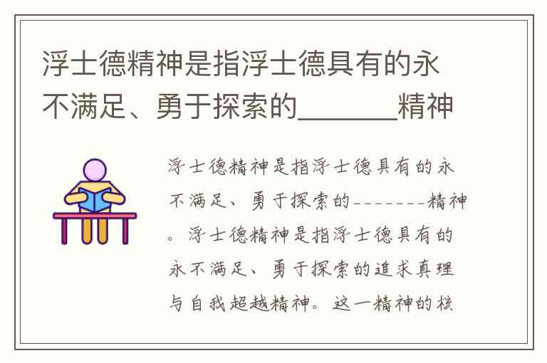 浮士德精神是指浮士德具有的永不满足、勇于探索的追求真理与自我超越精神。