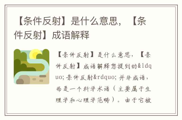 您提到的“条件反射”并非成语,而是一个科学术语(主要属于生理学和心理学范畴)。由于它被广泛使用,有时也会在日常用语中引申其含义。以下是详细解释: