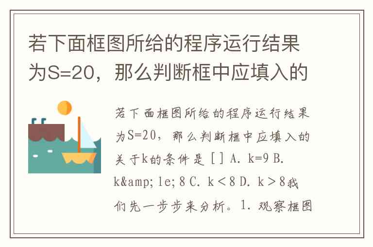 虽然题目没给出具体程序,但从常见的“循环累加直到 S=20”的程序框图模式来看,一般结构是: