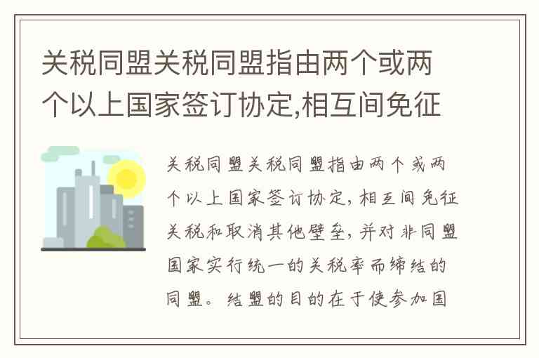 关税同盟关税同盟指由两个或两个以上国家签订协定,相互间免征关税和取消其他壁垒,并对非同盟国家实行统一的关税率而缔结的同盟。结盟的目的在于使参加国的商品在统一关税之内的市场上处于有利地位,排除非同盟国商品的竞争,它开始带有超国家的性质。如欧洲经济共同体实行经济一体化的基础就是关税同盟。 A. 煤钢联营 B. 欧共体成立 C. 欧盟成立 D. 欧元流通