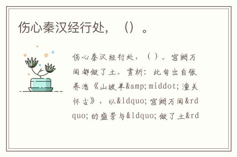 伤心秦汉经行处,()。