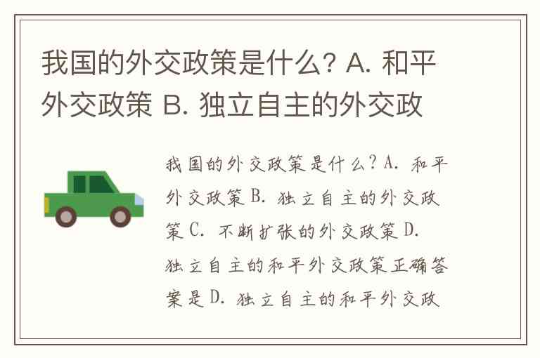 我国的外交政策是什么? A. 和平外交政策 B. 独立自主的外交政策 C. 不断扩张的外交政策 D. 独立自主的和平外交政策
