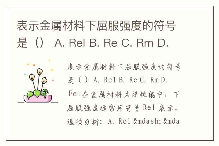 表示金属材料下屈服强度的符号是() A. Rel B. Re C. Rm D. Fel
