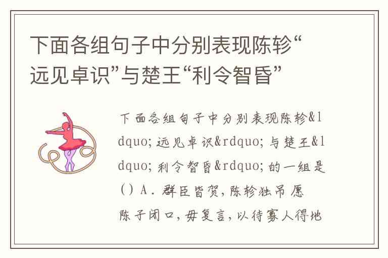 要选出分别表现陈轸 “远见卓识” 与楚王 “利令智昏” 的一组,需要逐项判断:
