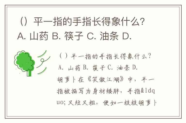 ()平一指的手指长得象什么? A. 山药 B. 筷子 C. 油条 D. 胡萝卜