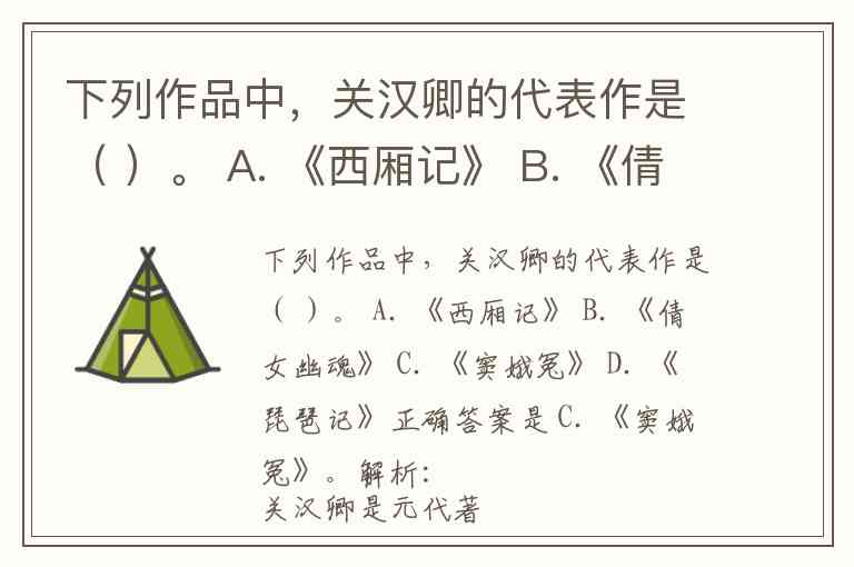 关汉卿是元代著名杂剧作家,被誉为“元曲四大家”之首,其代表作是《窦娥冤》(全名《感天动地窦娥冤》)。该剧通过窦娥的悲惨遭遇,深刻揭露了社会黑暗,是元杂剧中悲剧的典范。