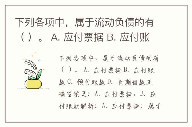 下列各项中,属于流动负债的有( )。 A. 应付票据 B. 应付账款 C. 预付账款 D. 长期借款